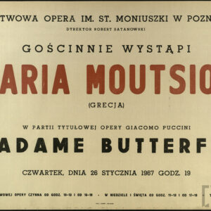 07.02.1967Afisz gościnnych występów greckiej solistki Marii Moutsiou w spektaklu operowym Madame Butterfly Giacoma Pucciniego