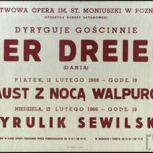05.03.1966Afisz spektakli operowych Faust z Nocą Walpurgii Charles’a Gounoda i Cyrulik sewilski Gioacchina Rossiniego z gościnnym udziałem duńskiego dyrygenta Pera Dreiera