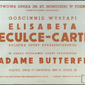 11.02.1966–13.02.1966Afisz gościnnego występu Elisabety Neculece-Cartis w spektaklu operowym Madame Butterfly Giacoma Pucciniego