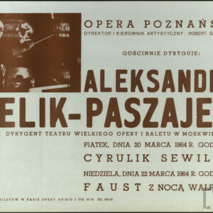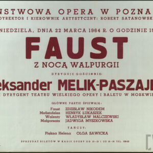 08.04.1964Afisz spektaklu Faust Charles’a Gounoda z gościnnym występem rosyjskiego dyrygenta Aleksandra Melika-Paszajewa