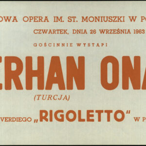 01.12.1963Afisz gościnnego występu tureckiego solisty Ferhana Onata w spektaklu operowym Rigoletto Giuseppe Verdiego