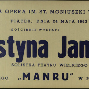 25.05.1963Afisz gościnnego występu solistki Krystyny Jamroz w spektaklu operowym Manru Ignacego Jana Paderewskiego