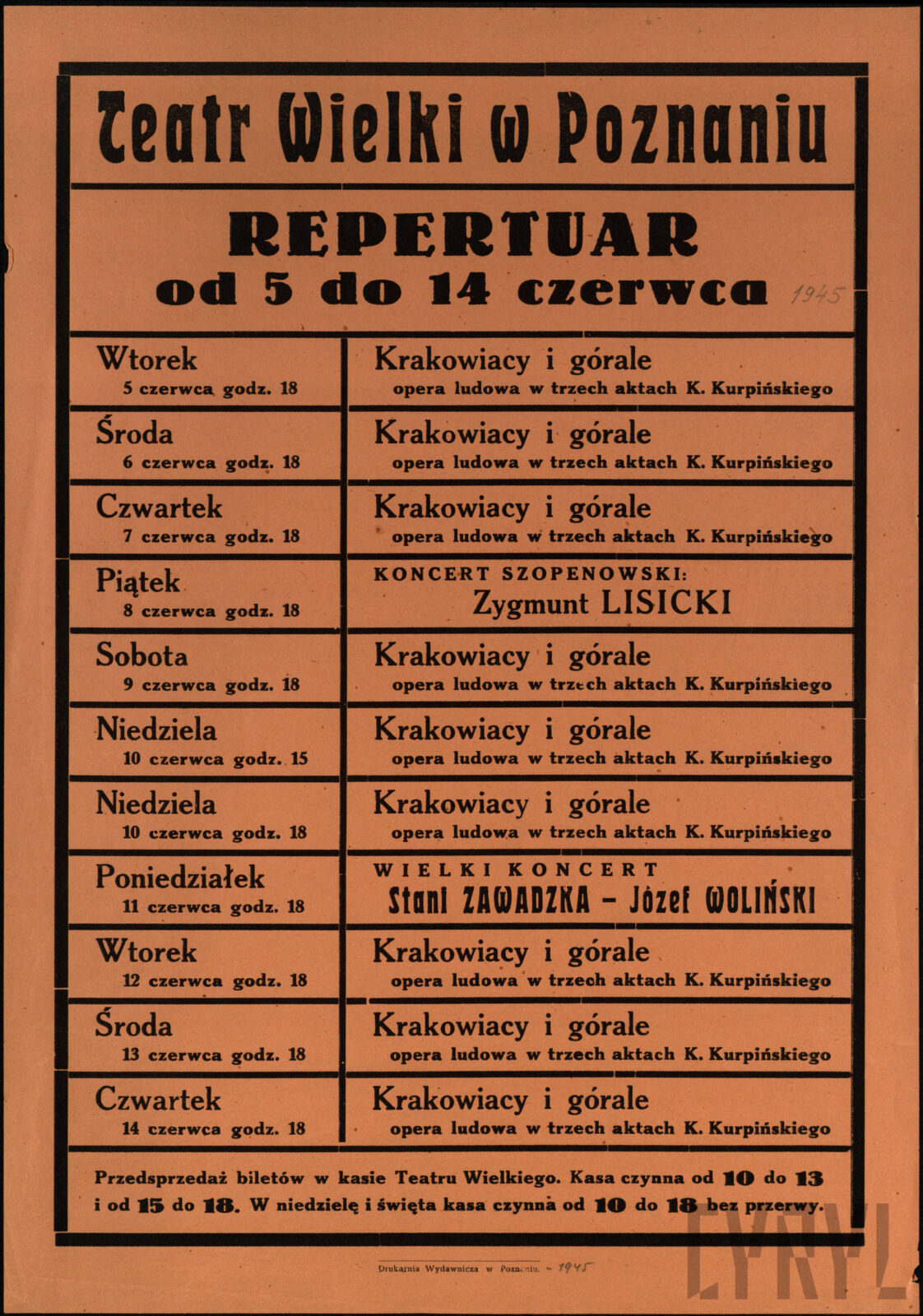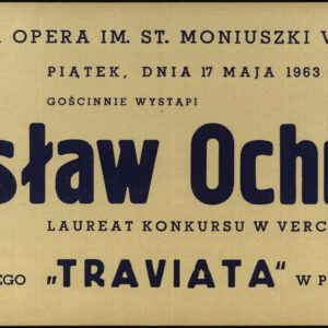 24.05.1963Afisze gościnnego występu Wiesława Ochmana w spektaklu Traviata Giuseppe Verdiego na deskach Opery poznańskiej
