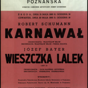 03.01.1962Afisz spektakli Karnawał Roberta Schumanna i operetki Wieszczka lalek Józefa Bayera na deskach Opery poznańskiej