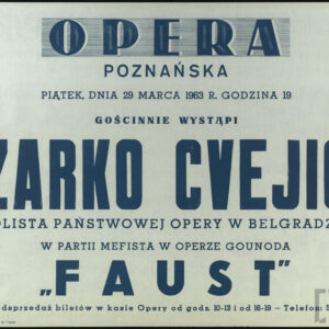 21.04.1963Afisz gościnnego występu serbskiej solistki Żarko Cvejic w spektaklu operowym Faust Charles’a Gounoda