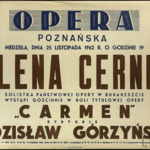 02.12.1962Afisz gościnnego występu rumuńskiej solistki Eleny Carnei w spektaklu operowym Carmen Georges’a Bizeta pod batutą Zdzisława Górczyńskiego