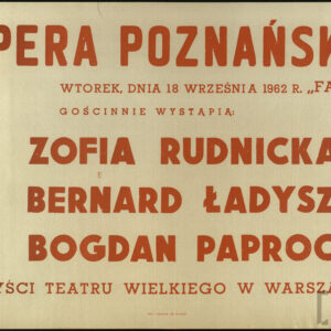 25.11.1962Afisz gościnnych występów solistów Zofii Rudnickiej, Bernarda Ładysza i Bogdana Paprockiego w spektaklu operowym Faust Charles’a Gounoda