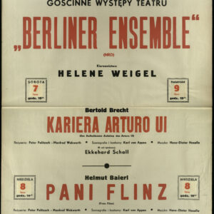 07.07.1962–09.07.1962Afisz gościnnych występów artystów Berliner Ensemble w spektaklach operowych Kariera Artura U Bertolta Brechta i Pani Flinz Helmuta Baierla