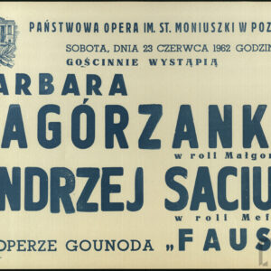 07.1962Afisz gościnnego występu solistów Barbary Zagórzanki i Andrzeja Saciuka w spektaklu operowym Faust Charles’a Gounoda