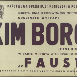 19.06.1962Afisz gościnnego występu solisty z Finlandii Kima Borga w spektaklu operowym Faust Charles’a Gounoda