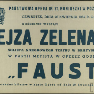 16.06.1962Afisz gościnnego występu solisty Narodowego Teatru w Bratysławie Gejza Zelenaya w spektaklu operowym Faust Charles’a Gounoda