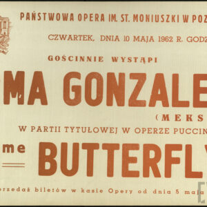 19.05.1962Afisz gościnnego występu meksykańskiej solistki Irmy Gonzalez w spektaklu operowym Madame Butterfly Giacoma Pucciniego