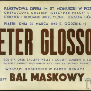 12.04.1962Afisz gościnnego występu brytyjskiego solisty Petera Glossopa w spektaklu operowym Bal maskowy Giuseppe Verdiego