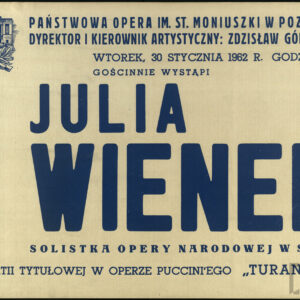 30.03.1962Afisz gościnnego występu białoruskiej solistki Julii Wiener w spektaklu operowym Turandot Giacoma Pucciniego
