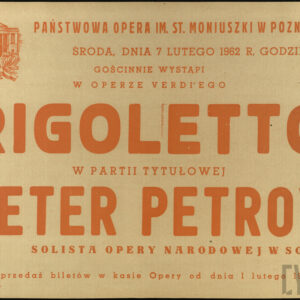 30.01.1962Afisz gościnnego występu bułgarskiego solisty Petera Petrova w spektaklu operowym Rigoletto Giuseppe Verdiego