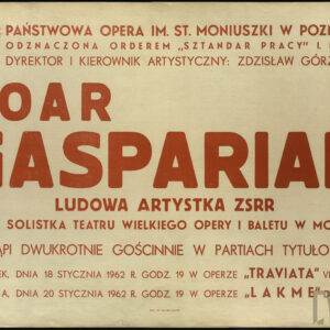 07.02.1962Afisz gościnnych występów rosyjskiej solistki Goary Gaspariany w spektaklach operowych Traviata Giuseppe Verdiego i Lakmé Léo Delibes’a