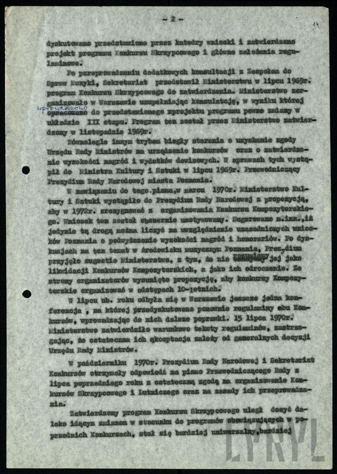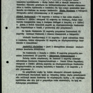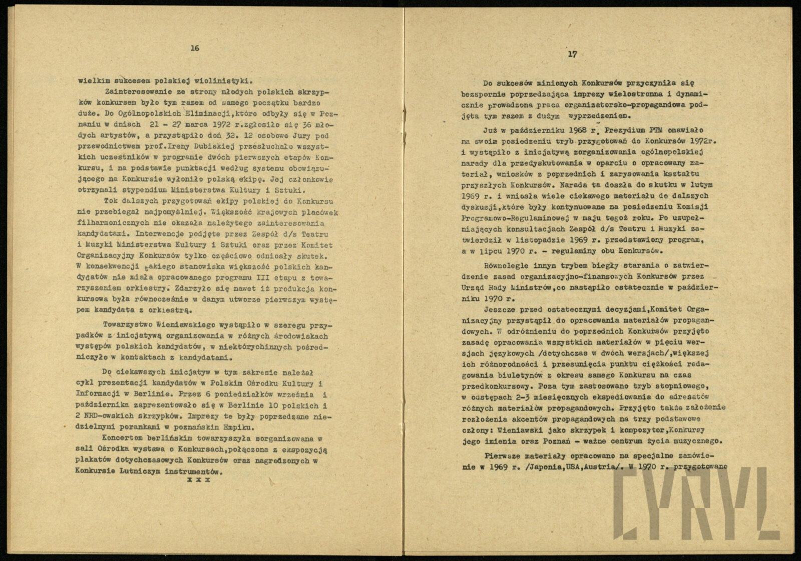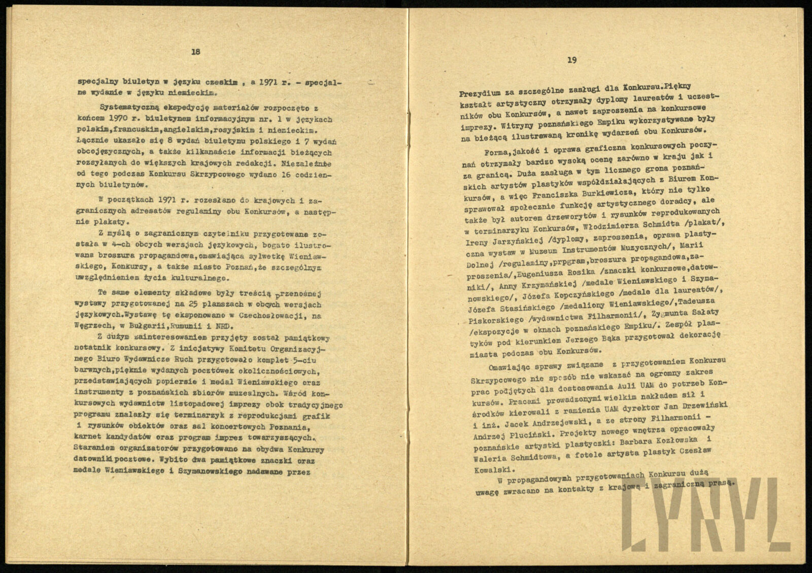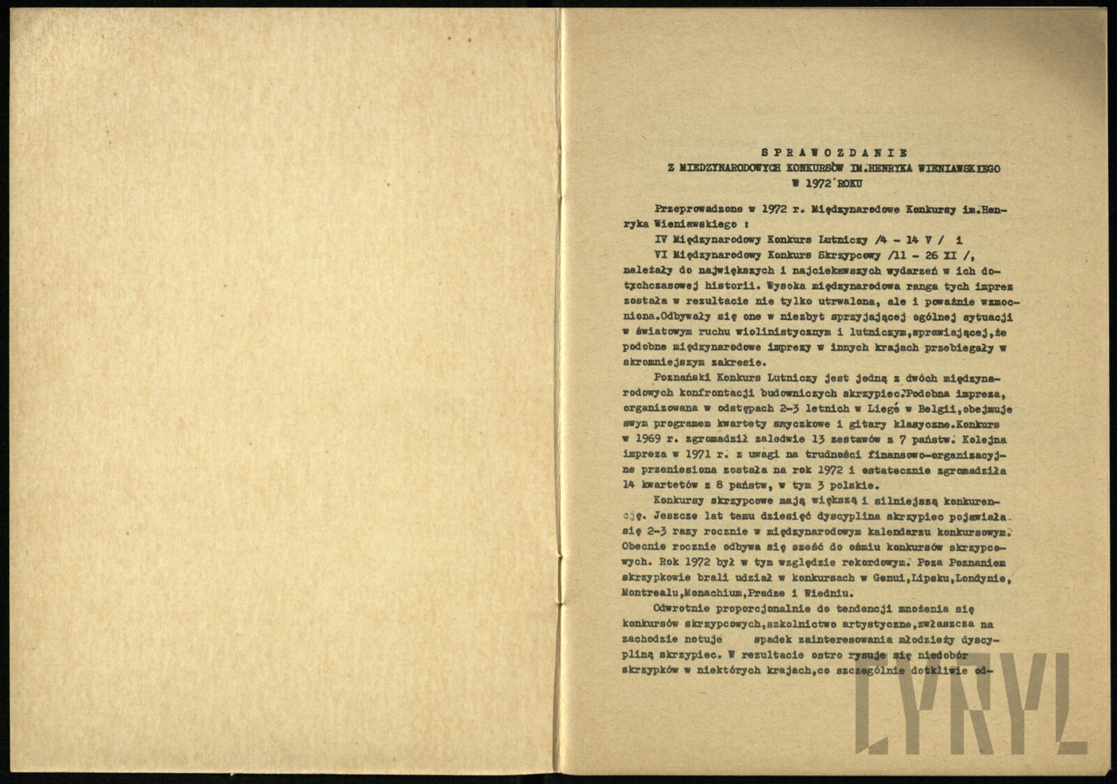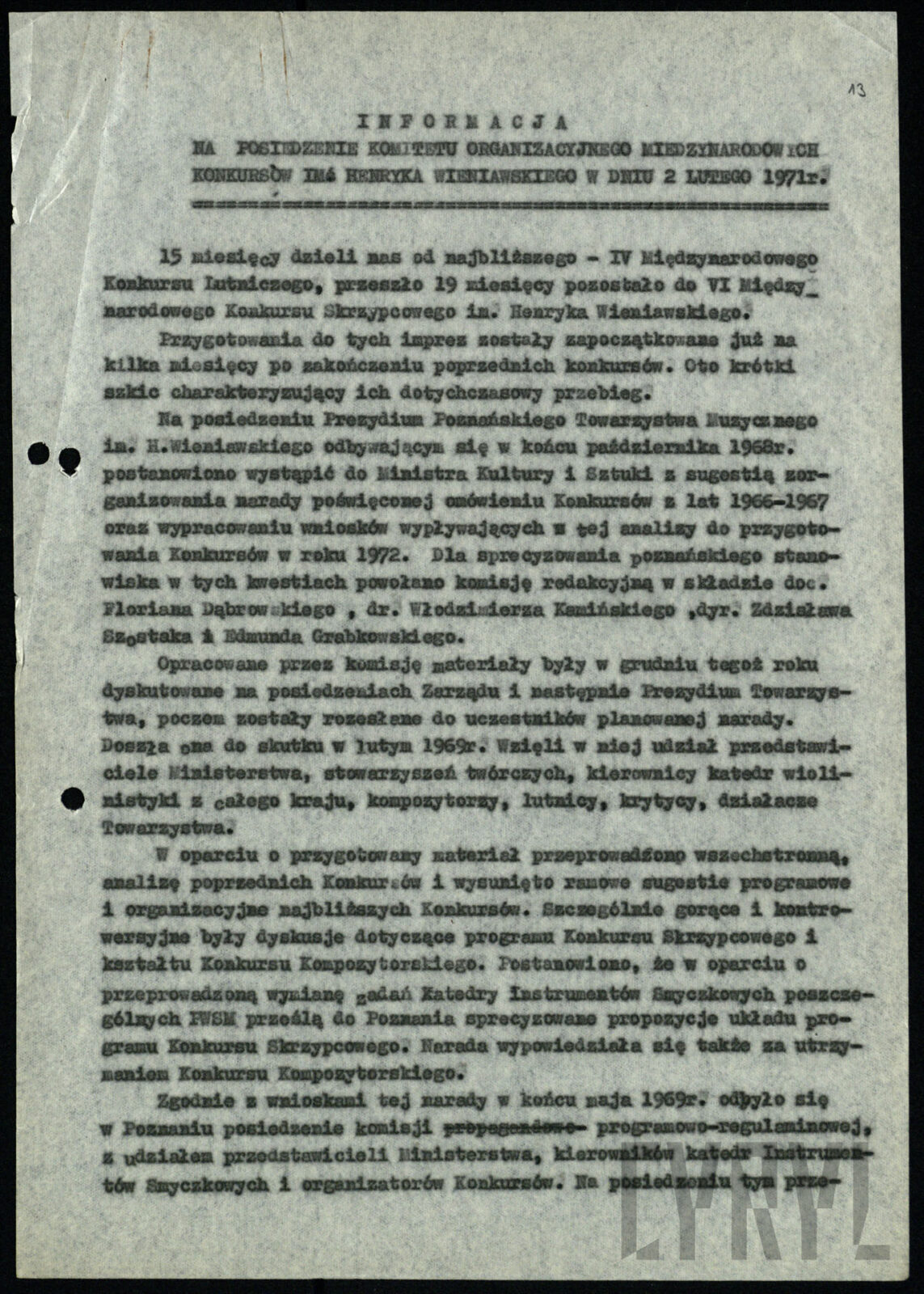 Sprawozdanie z realizacji prac do Międzynarodowych Konkursów im. Henryka Wieniawskiego (lutniczego i skrzypcowego) przygotowane na posiedzenie Komitetu Organizacyjnego02.02.1971