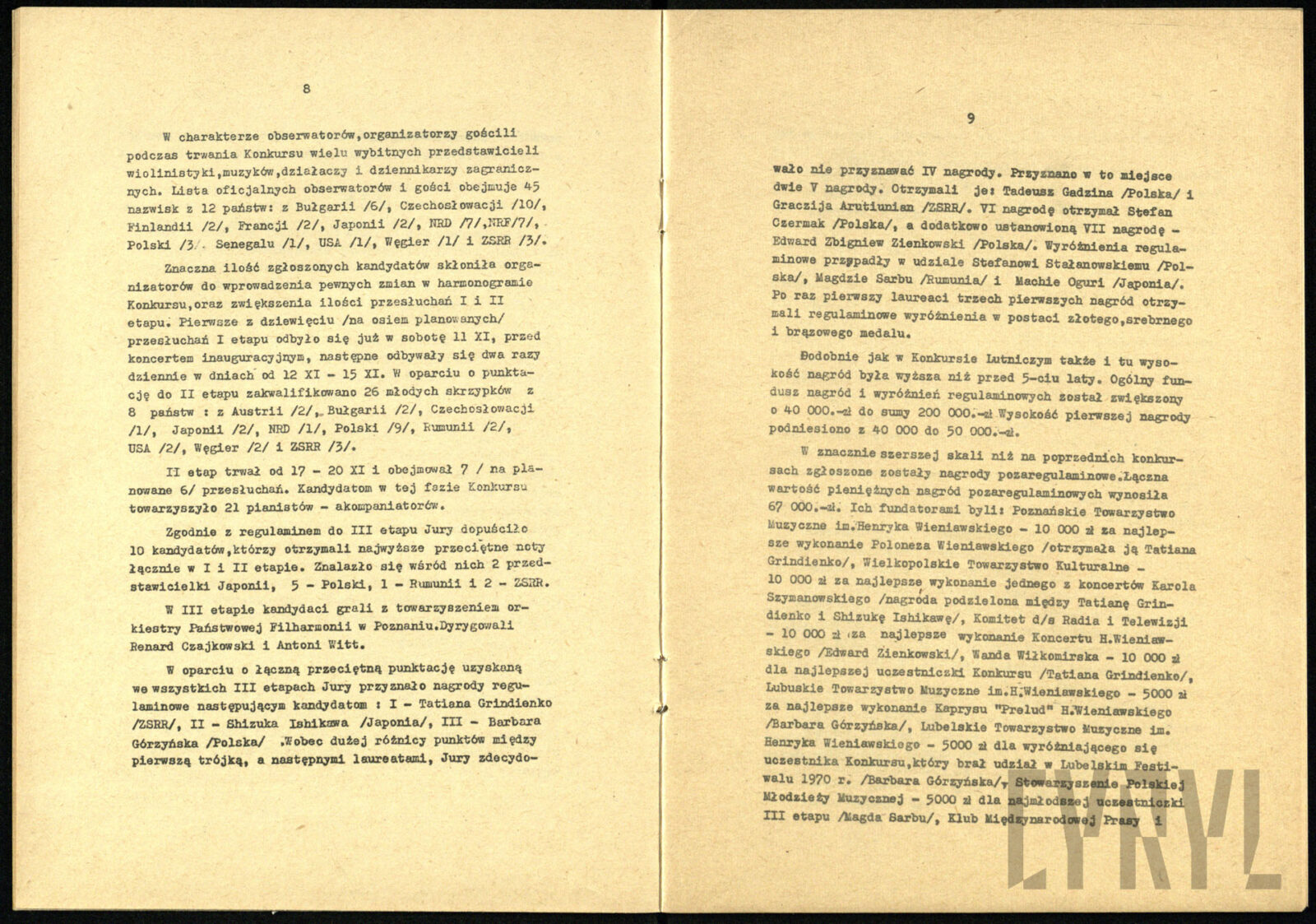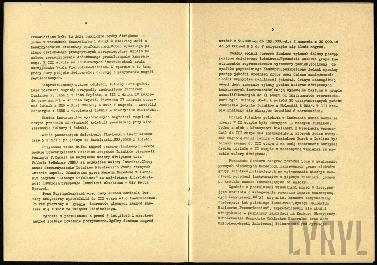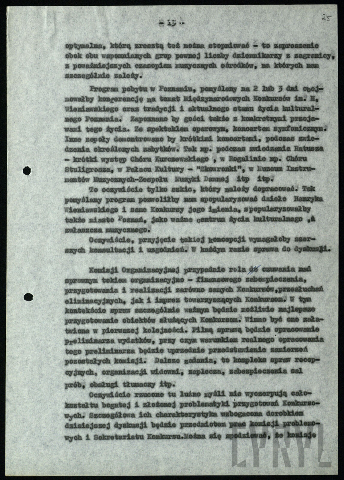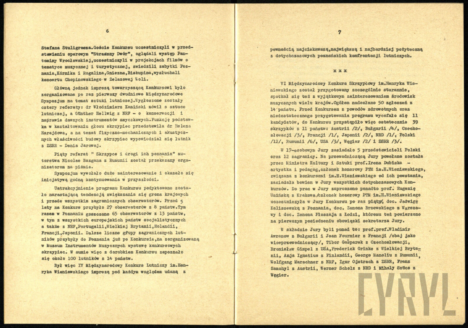 Sprawozdanie z realizacji prac do Międzynarodowych Konkursów im. Henryka Wieniawskiego (lutniczego i skrzypcowego) przygotowane na posiedzenie Komitetu Organizacyjnego02.02.1971