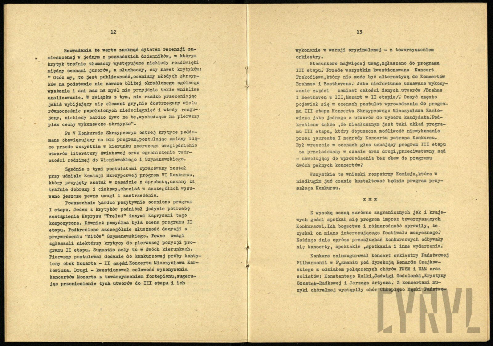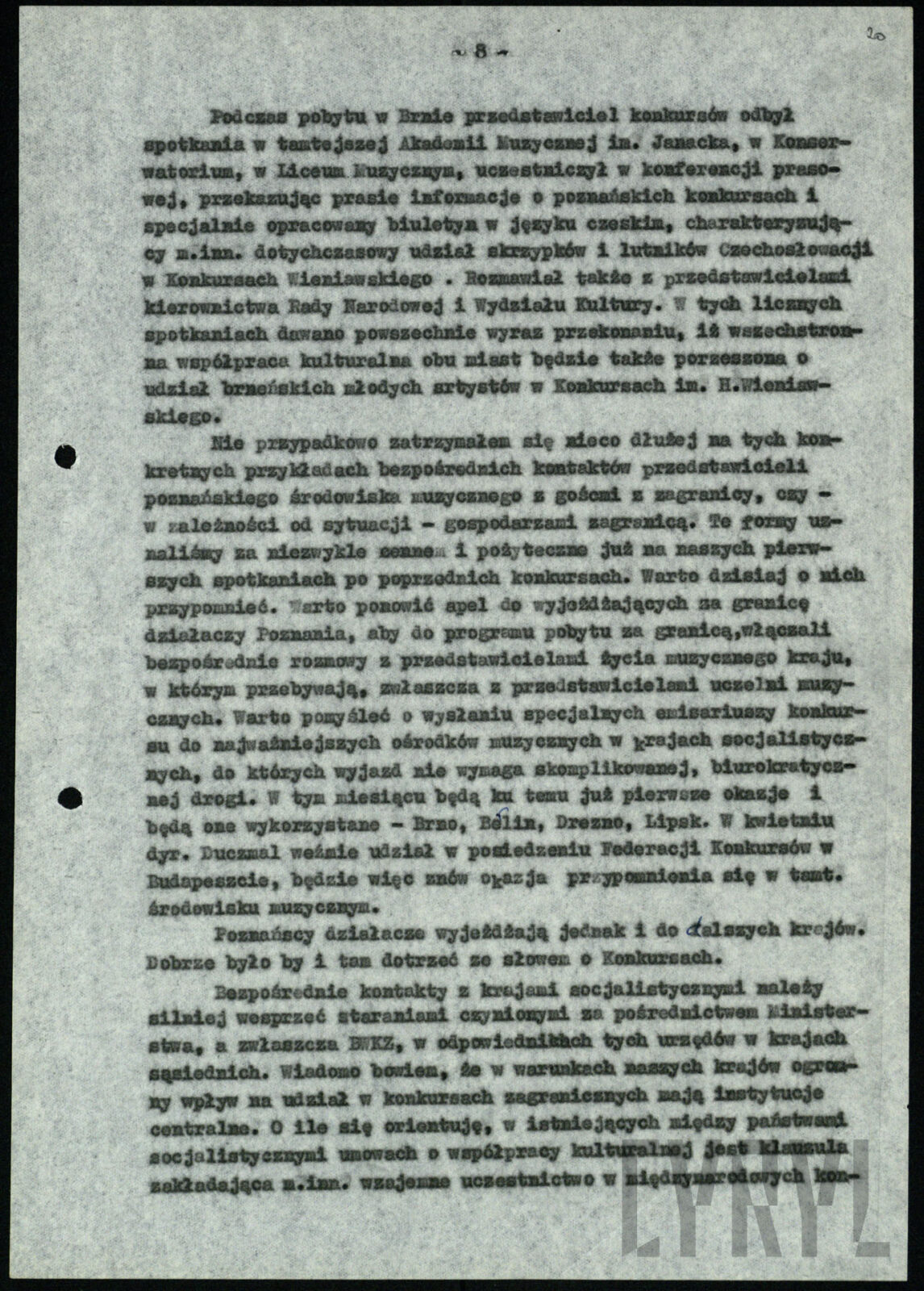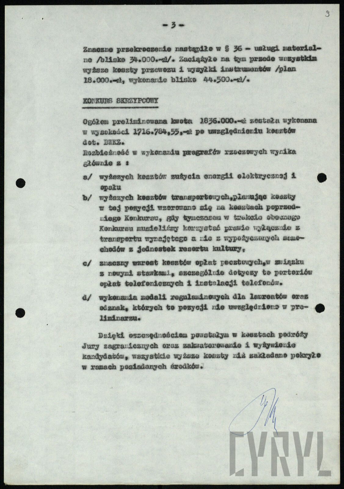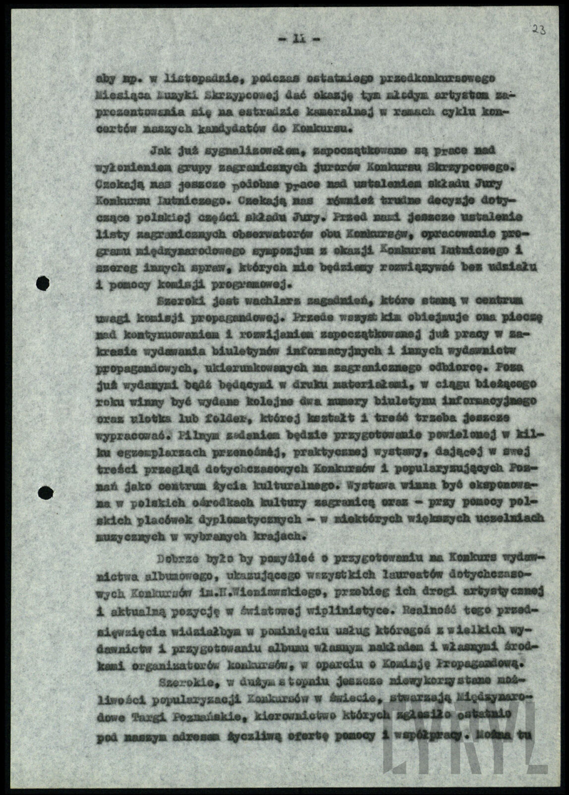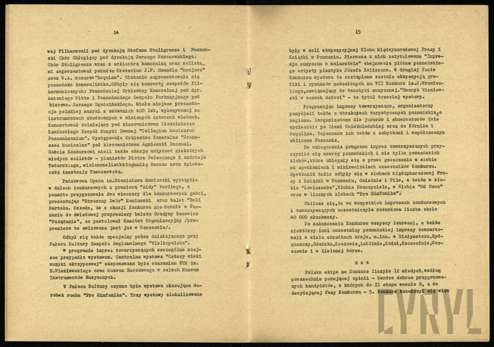 Sprawozdanie z realizacji prac do Międzynarodowych Konkursów im. Henryka Wieniawskiego (lutniczego i skrzypcowego) przygotowane na posiedzenie Komitetu Organizacyjnego02.02.1971