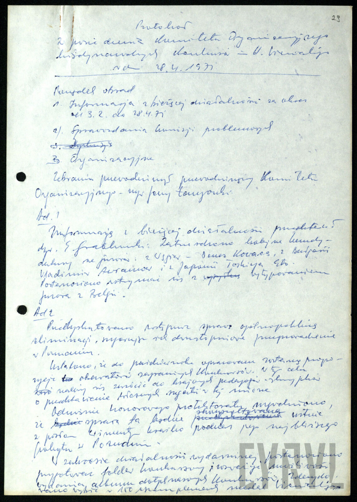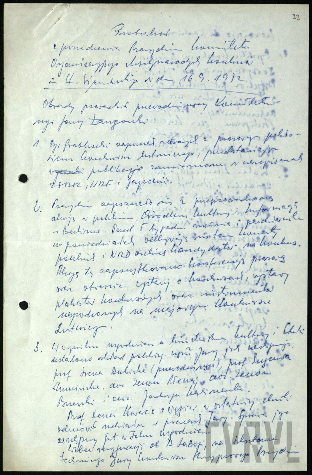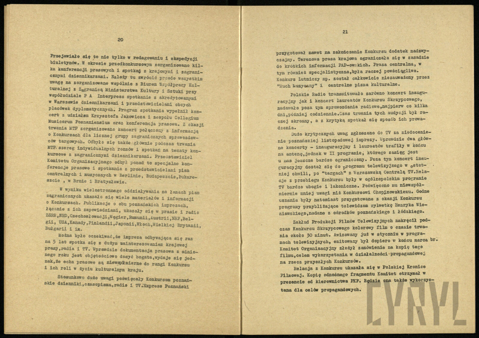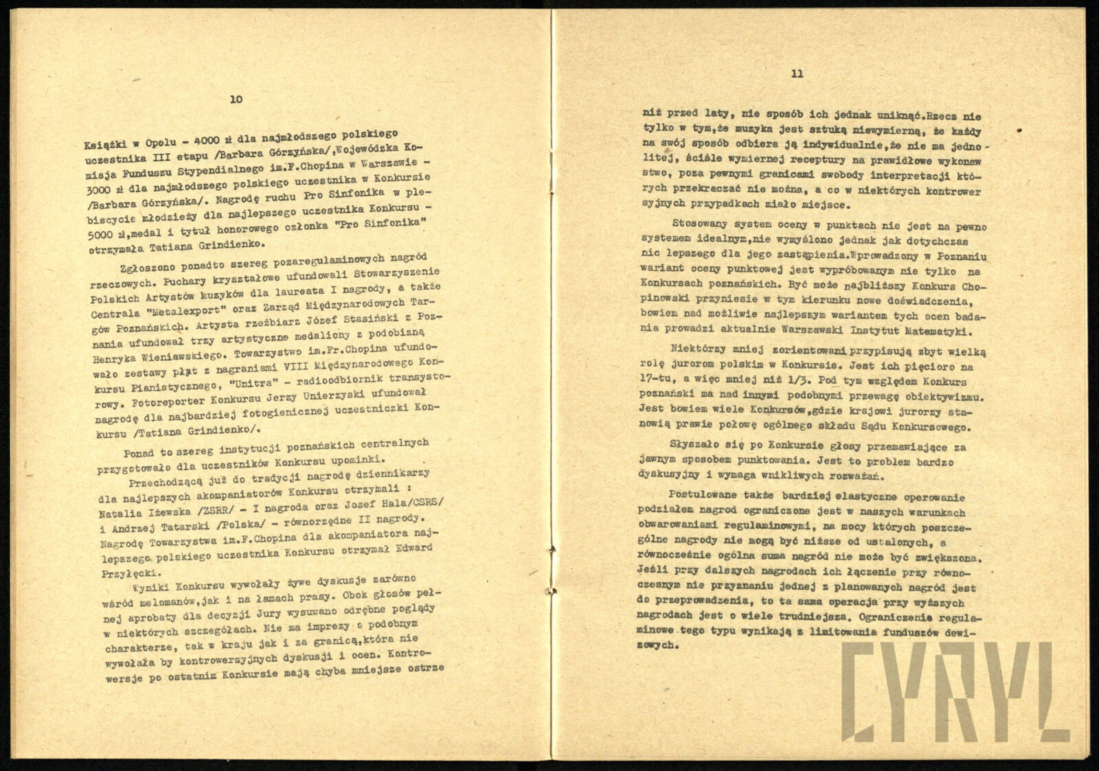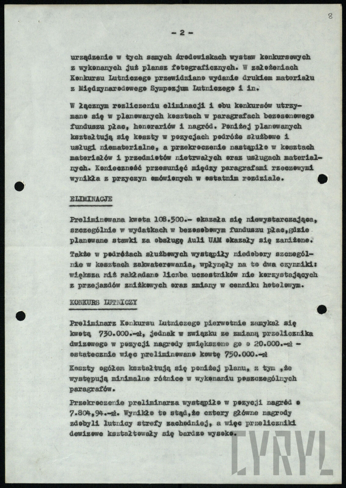 Sprawozdanie z realizacji prac do Międzynarodowych Konkursów im. Henryka Wieniawskiego (lutniczego i skrzypcowego) przygotowane na posiedzenie Komitetu Organizacyjnego02.02.1971