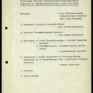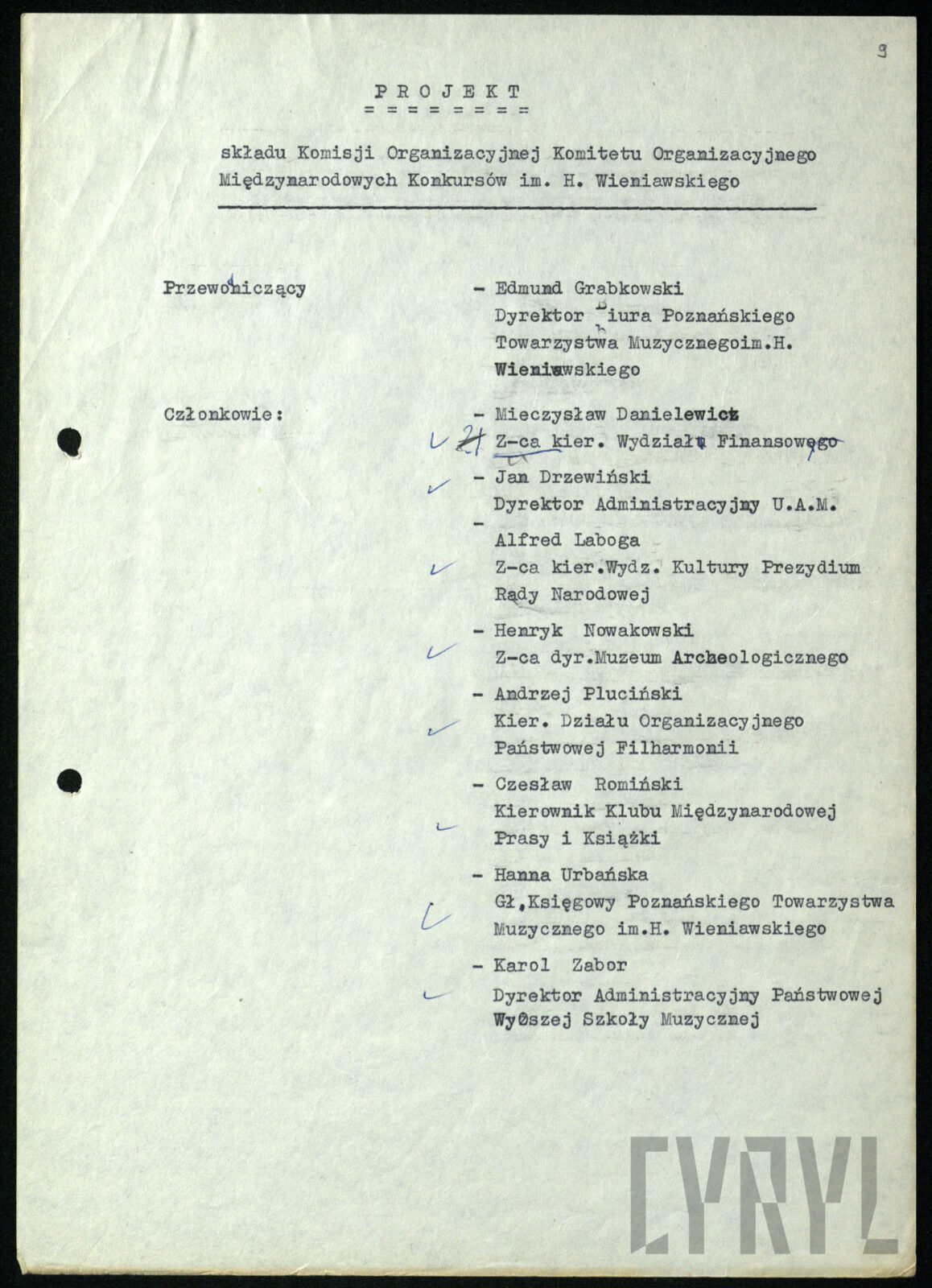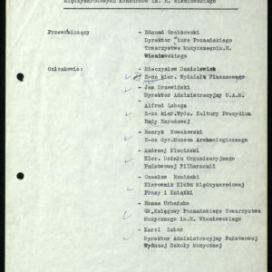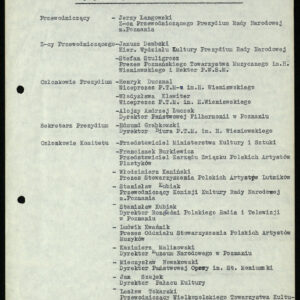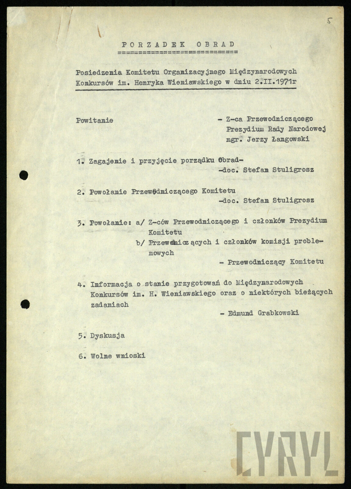 Informacja o powołaniu Komitetu Organizacyjnego Międzynarodowych Konkursów im. Henryka Wieniawskiego (lutniczego i skrzypcowego) i jego składzie oraz pracach związanych z organizacją konkursów29.01.1971