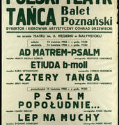 Ponad cztery dekady istnienia Polskiego Teatru Tańca ilustruje m.in. kolekcja plakatów i afiszy dokumentująca bogatą, obfitującą w spektakularne wydarzenia premierowe i festiwalowe historię Teatru. Poza afiszami związanymi ze spektaklami premierowymi realizowanymi w pierwszym piętnastoleciu (1973-87) działalności Polskiego Teatru Tańca głównie przez Conrada Drzewieckiego, a od 1988 roku, od czasu dyrekcji Ewy Wycichowskiej także przez nią i wybitne osobowości choreograficzne z całego świata, takie jak Mats Ek, Birgit Cullberg, Virpi Pahkinnen, Karine Saporta, Ohad Naharin czy Jo Stromgron, w zbiorze znajdują się także liczne afisze w językach europejskich czy azjatyckich dokumentujące zagraniczne podróże Teatru. Autorami niektórych plakatów są wybitni artyści: Zbigniew Kaja, Władysław Wigura, Ryszard Kaja i Piotr Zdanowicz, ten ostatni nagrodzony za plakat dla Polskiego Teatru Tańca Złotym Medalem na Biennale Plakatu w Meksyku. Warto się im bliżej przyjrzeć, bo nie dość, że opowiadają dzieje jednego z najlepszych polskich zespołów baletowych, to jeszcze czynią to w sposób niezwykle piękny. Publikowana kolekcja obejmuje archiwalia od początku funkcjonowania teatru i będzie sukcesywnie uzupełniana.