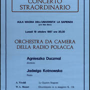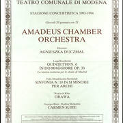 Wśród różnego rodzaju materiałów archiwalnych dokumentujących działalność artystyczną afisze nie odgrywają może aż tak dużej roli i nie są nośnikiem takiej zawartości merytorycznej, jak programy koncertów czy spektakli, materiały prasowe czy po prostu fotografie, ale na pewno znakomicie uzupełniają sceniczną historię artysty lub zespołu. Ich głównym celem jest informowanie o jednostkowym często wydarzeniu, ale ułożone chronologicznie świetnie pokazują rozwój, który dokonał się w karierze artysta czy artystów i drogę, jaką musieli pokonać na swej twórczej drodze, w przypadku Orkiestry Amadeus – na sam szczyt. Krótki przegląd afiszy zespołu znakomicie pokazuje, że mamy w Poznaniu do czynienia z gwiazdą światowych scen – w ciągu zaledwie 13 lat, z których pochodzą prezentowane afisze, orkiestra Agnieszki Duczmal (założona przez nią w 1968 roku) zagrała w większości krajów Europy i Ameryki Południowej. Dzisiaj gra na wszystkich kontynentach.