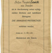 Prezentowana kolekcja, która trafiła do CYRYLA dzięki synowej Stefana Sawickiego Marii Sawickiej, zawiera kilkaset fotografii i dokumentów różnej proweniencji i układa się w interesującą historię długiego i pracowitego życia tego wybitnego poznaniaka. Znajdziemy w niej zdjęcia (większość autorstwa znanego poznańskiego fotografa Romana S. Ulatowskiego) kilkunastu realizacji projektów Sawickiego, świadectwa i dyplomy dokumentujące kolejne szczeble jego edukacji, korespondencję, pisma i druki urzędowe, wreszcie własnoręcznie spisywane życiorysy i dokumenty o charakterze prywatnym. Publikując na naszym portalu tę bogatą, różnorodną, a co najważniejsze nie znaną dotychczas kolekcję popularyzującą oraz przywracającą szerszej publiczności jednego z najbardziej zasłużonych budowniczych Poznania, wypada na koniec wyrazić życzenie, by stała się ona skutecznym bodźcem do dalszych, również tych już stricte naukowych dociekań mu poświęconych.