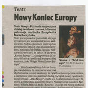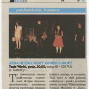 Artykuł o tournée spektaklu "Arka Noego. Nowy koniec Europy"
