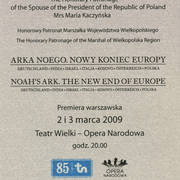 Zaproszenie na bankiet z okazji warszawskiej premiery spektaklu "Arka Noego. Nowy koniec Europy"