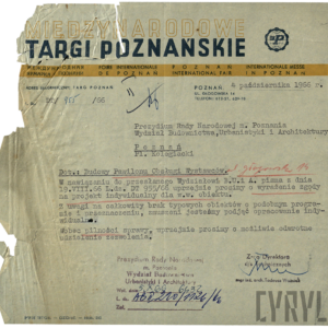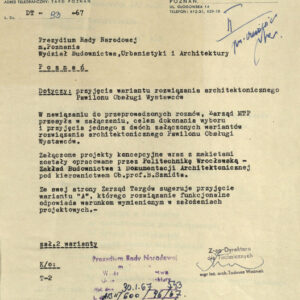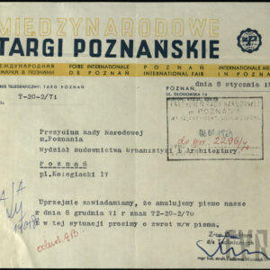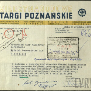 Po wielkich inwestycjach na terenach MTP, które podejmowano w latach 1954-67, nastąpił okres zastoju. Pojawił się nawet pomysł przeniesienia targów poza centrum miasta na Strzeszyn. Jednak pod koniec lat 60. XX wieku plany te porzucono i podjęto decyzję o budowie nowego pawilonu obsługi wystawców nazwanego Centrum Targowym. Obiekt zrealizowano w latach 1971-72 według projektu Henryka Jarosza, opierając się na wcześniejszej koncepcji rozbudowy terenów targowych Bolesława Szmidta, naczelnego architekta MTP i konsultanta projektu Jarosza. W sześciokondygnacyjnej bryle w formie sześcianu, który opiera się na cofniętych i przeszklonych dolnych kondygnacjach, po raz pierwszy w Poznaniu zastosowano aluminiową ścianę kurtynową. Wnętrza wykończono marmurowymi okładzinami i egzotycznym drewnem. W budynku umieszczono biura targowe, sale konferencyjne i centrum prasowe, a na ostatnich piętrach przedstawicielstwo Polskiej Izby Handlu Zagranicznego i agendy Ministerstwa Handlu Zagranicznego. Zanim w 2001 roku powstało przeszklone wejście wschodnie, które przykryło północną elewację pawilonu, budynek Centrum Targowego był jednym z bardziej charakterystycznych obiektów w śródmieściu Poznania.
