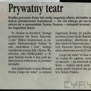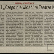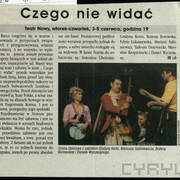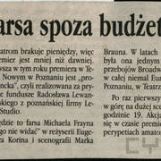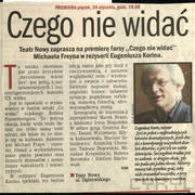 Artykuł dotyczący sfinansowania spektaklu "Czego nie widać" Michaela Frayna w reżyserii Eugeniusza Korina przez prywatnego producenta Radosława Lewandowskiego22.11.2002