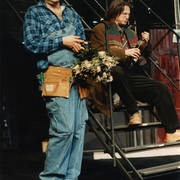 Ildefons Stachowiak (Tim Allgood) i Mirosław Kropielnicki (Lloyds Dallas) w spektaklu "Czego nie widać" Michaela Frayna w reżyserii Eugeniusza Korina24.01.2003