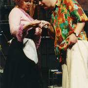Grażyna Korin (Dotty Otley) i Mariusz Sabiniewicz (Frederick Fellowes) w spektaklu "Czego nie widać" Michaela Frayna w reżyserii Eugeniusza Korina24.01.2003