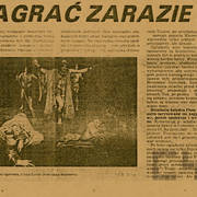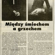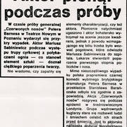 Artykuł opisujący wypadek podczas próby generalnej spektaklu "Czerwone nosy" Petera Barnesa w reżyserii Eugeniusza Korina, w czasie którego doszło do poparzenia aktora Mariusza Sabiniewicza22.04.1993