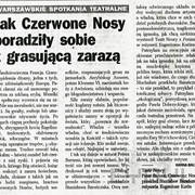 Relacja z festiwalu "Warszawskie Spotkania Teatralne", w ramach którego wystawiono spektakl "Czerwone nosy" Petera Barnesa w reżyserii Eugeniusza Korina04.1994
