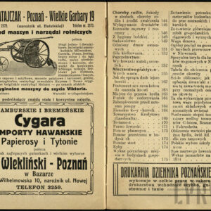 Prenumeratorzy „Poradnika” każdego roku otrzymywali w bonusie od wydawcy kalendarze rolnicze „z miejscem do zapisków na każdy miesiąc i z przypomnieniem najważniejszych robót”, a dodatkiem do kalendarza była niewielkich rozmiarów książeczka, rodzaj podręcznika, który zawierał liczne wskazówki i informacje z zakresu upraw i hodowli, działania maszyn rolniczych, melioracji, wykorzystania nawozów sztucznych, zabezpieczanie płodów przed klęskami żywiołowymi i chorobami roślin czy pszczelarstwa. W 1914 roku tygodnik był już zapewne bardzo popularnym w Poznaniu i Wielkopolsce periodykiem, skoro prawie setka poznańskich firm zdecydowała się na umieszczenie w dodatku do kalendarza na ten rok swoich reklam i anonsów. Dzisiaj informacje zawarte w tym dodatku nie mają już żadnej praktycznej wartości, część porad brzmi wręcz anegdotycznie, ale towarzyszące im ogłoszenia działających pod zaborami poznańskich przedsiębiorców i usługodawców, z dokładnymi adresami i szczegółową ofertą, mają dużą wartość dla historii miasta.