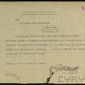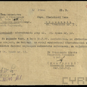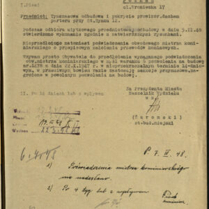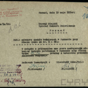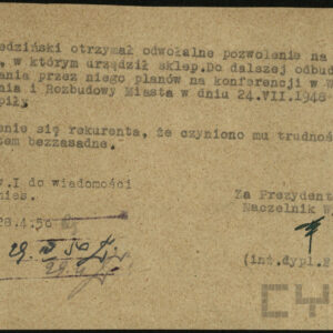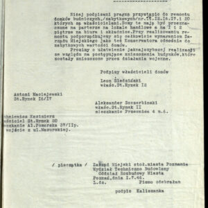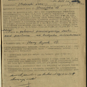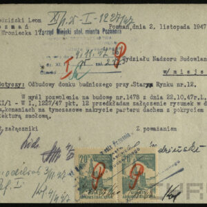 Przedwojenny Stary Rynek był jednym z centrów handlowych miasta, a w sklepach znajdujących się w domkach budniczych można było zakupić produkty wszelkiej maści. Od wózków dziecięcych, poprzez damskie kapelusze, aż po sprzęty elektrotechniczne, produkty kolonialne czy rowery. Na południowym krańcu tej zabudowy wisiał zaś szyld: CUKIERKI – CZEKOLADA, zachęcający do zakupów w składzie cukierniczym Leona Śledzińskiego, znajdującym się w domku budniczym nr 12. Na początku okupacji sklep został prawdopodobnie przejęty przez Niemców. Na szczęście Śledzińskiemu udało się przetrwać wojnę i pomimo poważnych zniszczeń kamienicy, podjął decyzję o reaktywacji swojego biznesu. Już w 1947 roku wystąpił do władz miejskich z wnioskiem o tymczasową zgodę na odbudowę parteru budynku i pokrycia go prowizorycznym dachem. Pomimo jej otrzymania i sfinansowania robót z własnej kieszeni, już rok później musiał stanąć do nierównej walki z całą komunistyczną machiną państwową, dążącą do wyeliminowania sektora prywatnego z gospodarczego życia kraju. Skład z cukierkami Śledzińskiego stał się bowiem kolejną ofiarą słynnej bitwy o handel, zapoczątkowanej przez ministra Hilarego Minca. Niestety, jak pokazuje poniższa dokumentacja, bitwę tę Leon Śledziński, jak wielu jemu podobnych, przegrał.