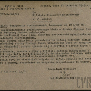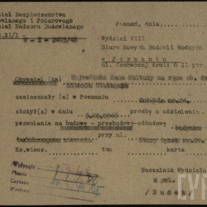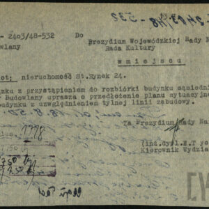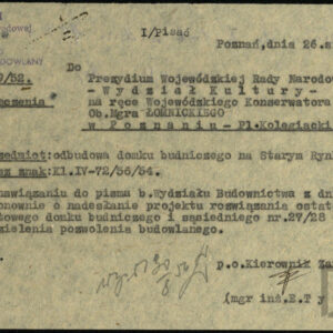 Przed wojną domek budniczy nr 24 miał kilku właścicieli. W 1949 roku ich spadkobiercom odebrano prawo do odbudowy, a właściwie – ze względu na stopień zniszczenia – budowy nowej kamienicy, powołując się na fakt, iż od 1945 roku nie przeprowadzili żadnych prac budowlanych. Od tego też roku odbudowę kamieniczki nadzorował Wydziału Kultury Prezydium Wojewódzkiej Rady Narodowej. Budowa przeciągała się. W 1954 roku prace wstrzymano ze względu na kontrowersje związane z projektem odbudowy. Budowę kontynuowano po dostarczeniu projektu uwzględniającego kwestie sporne.