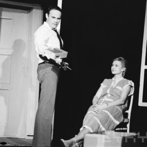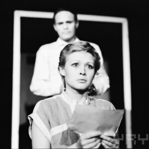 19.02.1983Grażyna Barszczewska (Gizela) i Roman Wilhelmi (Jerry) w spektaklu Dwoje na huśtawce Williama Gibsona w reżyserii Kazimierza Kutza