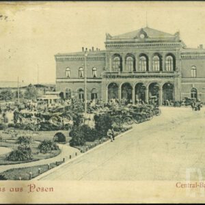 Pierwszy dworzec kolejowy na terenie obecnego Poznania otwarto w 1848 roku w leżącej wówczas na zachód od miasta wsi Jeżyce (dzisiaj dzielnica Poznania) w związku z uruchomieniem linii kolejowej łączącej Poznań ze Szczecinem. Ze względu na bliskość Twierdzy Poznań i lokalizację w pierwszym rejonie fortecznym, gdzie nie można było stawiać budowli trwałych (murowanych), budynki dworców (pasażerski i towarowy) były skromnymi konstrukcjami szachulcowymi. Dworzec jeżycki zamknięto w 1879 roku, kiedy wewnątrz miasta otwarto nowy Dworzec Centralny (Centralbahnhof), gdzie zbiegały się wszystkie linie kolejowe biegnące do miasta. Dwukondygnacyjny, prostokątny, podpiwniczony budynek nowego dworca składał się ze skrzydła frontowego mieszczącego hol główny i zespołu skrzydeł południowych otaczających wewnętrzne dziedzińce. Budowlę wzniesiono z cegły na fundamencie z kamieni polnych, a elewacje obłożono czerwoną licówką z dekoracyjnymi elementami z terakoty. Prócz holu z kasami biletowymi na dworcu otwarto jadalnię, bufet, restaurację, poczekanie pierwszej i drugiej klasy, przechowalnię bagażu, posterunek policji, pomieszczenie z telegrafem i sanitariaty. Według polskich mieszkańców Poznania dworzec był „drażniąco” pruski, jednak mimo tej opinii dotrwał w niewiele tylko zmienionej postaci do 2. połowy lat 40. XX wieku.