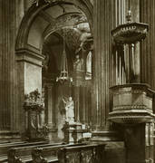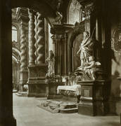 Teki Ulatowskiego przechowywane są w Biurze Miejskiego Konserwatora Zabytków w Poznaniu. Dzięki uprzejmości i otwartości kompetentnych pracowników biura i rozumieniu przez nich niekwestionowanych walorów tej kolekcji dla wszystkich poznaniaków, prezentujemy w CYRYLU kolejną tekę, w której znajduje się ponad 50 zdjęć poznańskiej fary, jednego z najpiękniejszych kościołów w mieście. Przeważają fotografie barokowego wnętrza świątyni z fragmentami imponującej nawy głównej i naw bocznych oraz rzeźbą ołtarzową. W tece znalazło się też kilka zdjęć złotnictwa z farnego skarbca i szat liturgicznych bogato haftowanych złotem i srebrem. Fara na pięknych, międzywojennych zdjęciach Ulatowskiego jest bogata, pyszna i efektowna, choć nieco zniszczona i przygaszona. Dziesięć lat później, w 1939 roku, zostanie ograbiona przez Niemców, którzy zrobią z niej magazyn. Blask odzyska po gruntownej, powojenne renowacji rozpoczętej w 1990 roku.