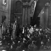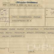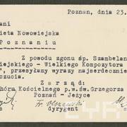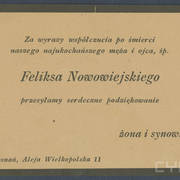 18 stycznia 1946 roku „umarł człowiek wielki: świetny artysta, genialny kompozytor i oddany służbie idei społecznik. Cała Polska chyli czoła nad Jego trumną”, donosił „Ilustrowany Kurier Polski” w numerze 20 z tego roku. Pogrzeb Feliksa Nowowiejskiego stał się wielką manifestacją poznaniaków. Msza w intencji zmarłego odbyła się w kolegiacie farnej. Na uroczystości żałobne przybyli bliscy kompozytora, prymas Polski kardynał Hlond, przedstawiciele władz Poznania, liczne grono znajomych i przyjaciół. W kościele zgromadziły się tłumy, by oddać hołd zmarłemu twórcy. Potem kondukt żałobny, do którego, mimo dotkliwego mrozu, po drodze przyłączało się coraz więcej osób, przeszedł ulicami Poznania, które, jak informował „Głos Wielkopolski” z 22 stycznia, na wniosek prezydenta miasta od godziny 8 do 12 były zamknięte dla ruchu. „Na przedzie orkiestra wojskowa i kompania honorowa […] potem młodzież, delegacje zespołów śpiewaczych, organizacje społeczne, organizacje polityczne, poznański świat artystyczny, duchowieństwo, rodzina, przedstawiciele władz i tłumy publiczności. A między duchowieństwem i rodziną wysoko na rydwanie trumna Tego, który słowa przysięgi Konopnickiej uczynił własnością narodu. U wejścia do zniszczonego pożogą wojenną Starego Ratusza poznańskiego cienie Mistrza wysłuchały ostatniego pożegnania przedstawiciela Rządu Jedności Narodowej i Ministra Kultury i Sztuki Poznańskiego Urzędu Wojewódzkiego Weigta, Wiceprezydenta miasta Drabowicza i prezesa Związku Kompozytorów Polskich na woj. Poznańskie prof. Poradowskiego”, relacjonował korespondent „Dziennika Polskiego w tekście Ostatnia droga twórcy „Roty”. „A gdy przed Ratuszem tłumy zaintonowały >>Rotę<<, gdy srebrny dźwięk hejnału z wieży imieniem Miasta pożegnał swego Mistrza Feliksa – czuliśmy wszyscy zebrani, że ubył Polsce Syn Dobry”, wspominał później ten dzień J. Młodziejowski w pierwszym numerze „Kroniki Stołecznego Miasta Poznania” z 1946 roku. Ciało Nowowiejskiego złożono na poznańskiej Skałce na Wzgórzu św. Wojciecha między trumnami ludzi zasłużonych nie tylko dla Poznania i Wielkopolski, ale także dla całej Polski. Po śmierci kompozytora z całej Polski i z zagranicy zaczęły nadchodzić listy z kondolencjami. Słowa żalu, pocieszenia i otuchy nadsyłali przyjaciele, znajomi, przedstawiciele wielu instytucji. Obok lakonicznych zdań wybrzmiało w nich wiele bardziej osobistych akordów, w których nadawcy nie ukrywali bólu po stracie swego Mistrza. W prezentowanej kolekcji zdjęć i telegramów z kondolencjami znakomicie uwidacznia się atmosfera tamtych wydarzeń i ogromny smutek po stracie ważnego człowieka – przyjaciela i artysty.