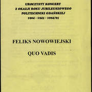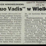 Oratorium Quo vadis jest uznawane za najsłynniejsze dzieło Nowowiejskiego. Inspiracją do jego powstania była powieść Henryka Sienkiewicza pod tym tytułem i podróż Nowowiejskiego do Rzymu w 1903 roku. Pod wpływem lektury, a przede wszystkim pod wrażeniem miejsc, w których przed wiekami rozgrywał się dramat chrześcijan, zrodziło się dzieło wokalno-instrumentalne i wkrótce zyskało ogromny rozgłos w Europie i w Ameryce. Premiera oratorium odbyła się w 1907 roku w Usti nad Łabą. Publiczność i krytyka przyjęła kompozycję z uznaniem, ale kompozytor nie był zadowolony z jej kształtu i dokonał w niej korekt. Premiera nowego opracowania Quo vadis, które kompozytor określił jako „Dramatische Szenen”, miała miejsce 22 października 1909 roku w Amsterdamie. Tym razem sukces był ogromny. Słuchacze zgotowali obecnemu na koncercie Nowowiejskiemu niezwykłą owację, kompozytor został ukoronowany pozłacanym wieńcem laurowym, a obecna na koncercie holenderska królowa Wilhelmina podarowała mu swój pierścień. Amsterdamska realizacja dzieła rozpoczęła triumfalny pochód oratorium przez światowe sceny. Utwór Feliksa Nowowiejskiego spotkał się z entuzjastycznym przyjęciem publiczności na całym świecie. W dwudziestoleciu międzywojennym prezentowany był około 200 razy w miastach całej Europy i obu Ameryk.