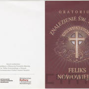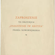 Oratorium Znalezienie św. Krzyża (Kreuzauffinndung. In hoc signovinces) to mistyczne dzieło zainspirowane starą legendą o św. Helenie. Feliks Nowowiejski skomponował je w pierwszych latach pobytu w Berlinie, w czasie studiów u wybitnego pedagoga Maxa Brucha. Prapremiera pierwszej wersji oratorium odbyła się 11 kwietnia 1906 roku we Lwowie, a premiera dzieła w ostatecznej postaci – 7 marca 1914 roku w Krefeld nad Renem. W 1918 roku kompozytor do programu koncertu włączył wstęp, oratorium Jerusalem. Dzieło zostało wystawione w wielu miastach Niemiec i Holandii, m.in. w Lipsku, Kolonii, Düsseldorfie, Duisburgu, Amsterdamie i Rotterdamie. Utwór zyskał spore uznanie, choć nie stał się tak popularny jak Quo vadis. Oratorium ukazało się drukiem w 1913 roku w wydawnictwie Verlag von F. E. C. Leuckart w Lipsku. Poznańska premiera dzieła miała miejsce 17 kwietnia 1930 roku pod batutą samego Feliksa Nowowiejskiego. Po koncercie w „Kurierze Poznańskim” Stanisław Wiechowicz napisał: „Znalezienie winno być rozpowszechnione po całym kraju, tym bardziej że za granicą znają je lepiej niż my. Powinno wejść do żelaznego repertuaru wszystkich większych chórów polskich. Również Quo vadis tego autora. Są to przecie nasze reprezentacyjne dzieła oratoryjne”. Dopiero 72 lata później, 24 marca 2002 roku, dzieło zabrzmiało ponownie w Poznaniu, a także w Olsztynie i Częstochowie. Obecnie najczęściej wykonywane jest podczas uroczystości upamiętniających ważne dla Polaków rocznice.