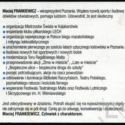 Ludwik i jego prawnuk Maciej z poznańskiej rodziny Frankiewiczów mieli w swoich życiorysach kilka punktów wspólnych – pierwszy był budowniczym, drugi studiował architekturę, obaj byli działaczami społecznymi i angażowali się w działalność sportową. Ludwik Frankiewicz, urodzony w 1858 roku, był właścicielem jednego z najlepszych przedsiębiorstw budowlanych w Poznaniu i dwóch cegielni na Głównej i Górczynie. Wybudował wiele kamienic w mieście, m.in. przy ulicach: Krzyżowej, Ogrodowej 11 i 18, Kanałowej 3/4 i Strzeleckiej, dom ss. elżbietanek przy ul. Kościelnej, w której prowadziły ochronkę, i dom własny przy pl. Bernardyńskim. Był wielokrotnie wybierany na członka Rady Miejskiej (w 1907 roku jako jeden z zaledwie siedmiu Polaków na 60 radnych), a w 1919 roku został członkiem magistratu. Dwukrotnie, w latach 1910-14 i 1917-19, był prezesem Klubu Wioślarskiego z 1904 r. w Poznaniu (K.W. 04). W lutym 1921 roku został pierwszym polskim cechmistrzem Strzechy. Cechu Budowlanego Poznańskiego. Zmarł w 1924 roku.
