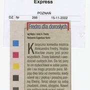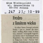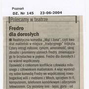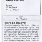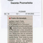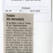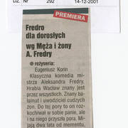 Recenzja spektaklu "Fredro dla dorosłych" w reżyserii Eugeniusza Korina wystawionego w ramach Łódzkiego VI Ogólnopolskiego Festiwalu Sztuk Przyjemnych24.01.2000
