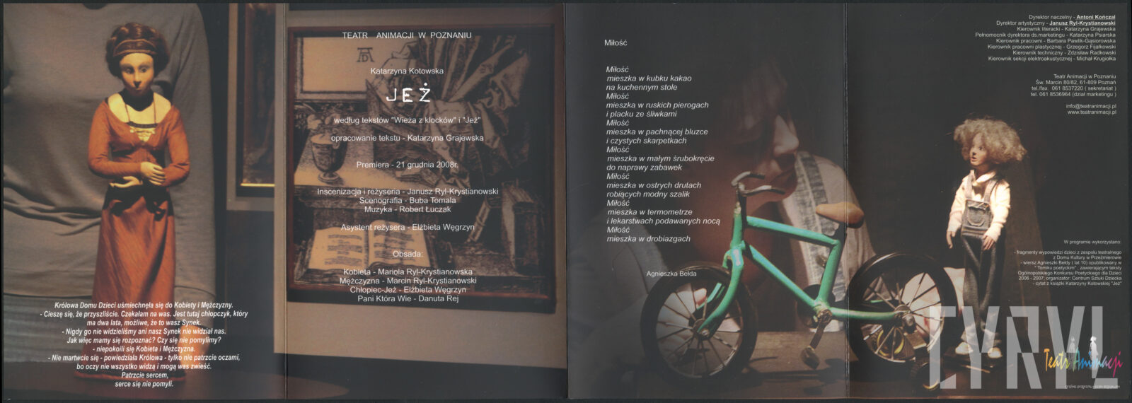 21.12.2008Scena ze spektaklu Jeż Katarzyny Kotowskiej, na pierwszym planie Elżbieta Węgrzyn animująca lalkę Chłopca-Jeża