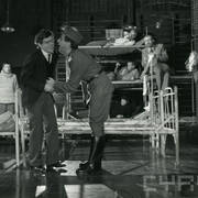 Lech Łotocki (Andrzej) i Jerzy Stasiuk (Roullot ) w premierowym spektaklu "Jezioro Bodeńskie" Stanisława Dygata w reżyserii Izabelli Cywińskiej