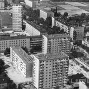 Pętla tramwajowa i osiedle mieszkaniowe przy pl. Waryńskiego na Ogrodach (widok z wieżowca w kierunku południowo-zachodnim)